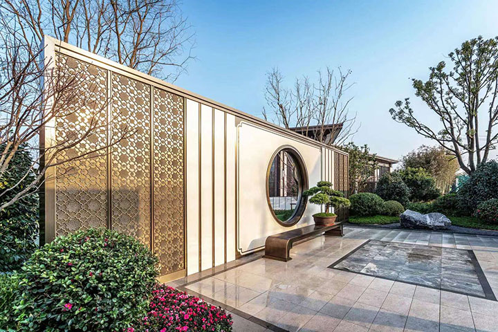 - 產(chǎn)品寓意中國(guó)古建筑多種元素的靈活運(yùn)用,營(yíng)造東方花園的華貴印象。同時(shí),現(xiàn)代感的幾何線(xiàn)條穿插于文華之間,彰顯出鮮明的時(shí)代氣息。